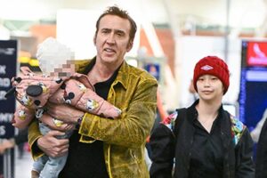 The ‘Renfield’ entertainer seemed to be a pleased dad close by his grinning spouse, as they brought their child little girl August through the JFK...