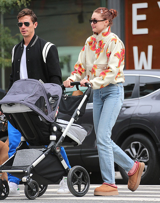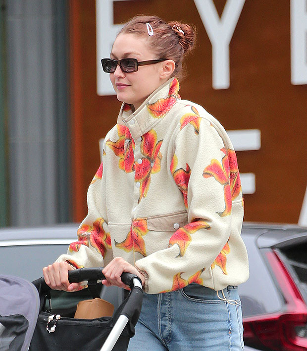 Gigi Hadid, 26, looked unimaginable in an elegant and happy with looking outfit during her most recent walk! The model and new mother was joined by her one-year-old girl Khai, who was in a buggy, and a companion as she was as of late shot in New York City. She wore a tan wool coat that had a dim pink and yellow flower plan alongside pants, pink socks, and warm-looking tan slip-on boots.