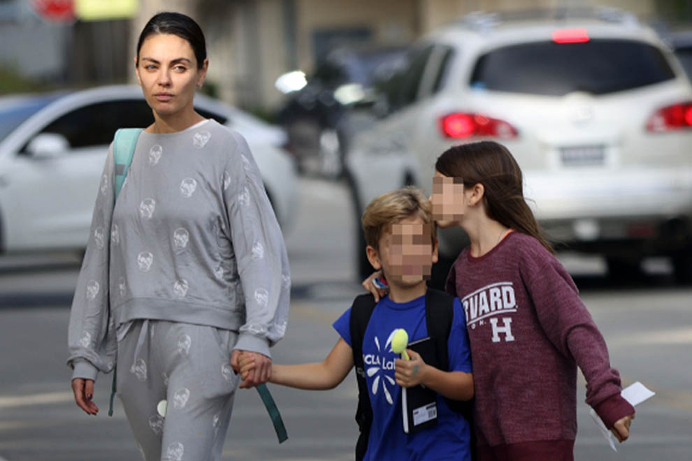 Mila Kunis was seen out with her children on Wednesday, November 2, and the lovable couple were snapped looking very tender! In photographs, the Most fortunate Young lady Alive entertainer, 39, shook a relaxed dark print sets of joggers with a matching pullover. She matched the look with a basic pig tail and a couple of dark tennis shoes. She clasped hands with child Dmitri, 5, who wore an imperial blue tee shirt and matching shorts, and a couple of blue tennis shoes. He likewise conveyed a knapsack and gave off an effect of being having school. Older sibling Wyatt, 8, likewise conveyed a rucksack, and put a defensive arm around her sibling. Mila’s clone little girl wore a curiously large maroon Harvard pullover and a couple of light blue tennis shoes.
