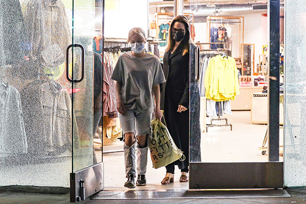 Both Angelina and Vivienne remained secured with covers covering their mouths as they shopped. Vivienne was seen holding a Urban Outfitters sack as they left the store on Melrose Avenue.